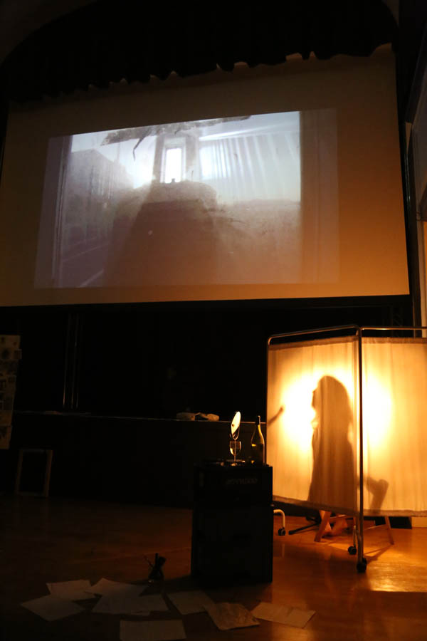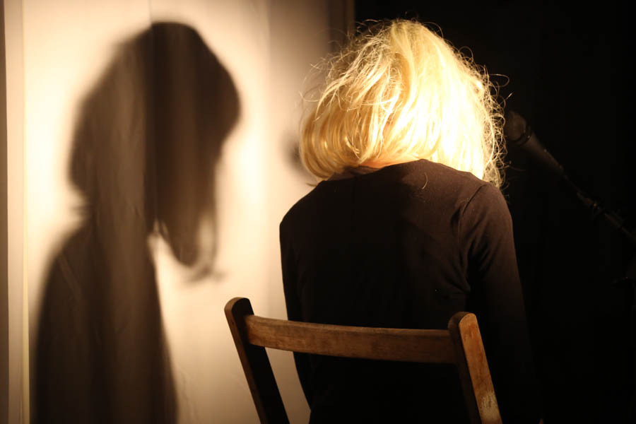 In the second portion of the performance, the stage is stripped and we meet Sarah, sitting behind a screen and starkly lit in profile. Her everyday existence as the mother of a distant teenage boy is plummeted into pandemonium by his suicide attempt. The writer/performer gives a candid account of Sarah’s sometimes inappropriate reactions, thoughts and deeds on hearing this tragic news, plunging the audience into the depths of this mother’s mind, leaving us feeling like uncomfortable voyeurs. Sarah is not averse to her own uncomfortable voyeurism as she stumbles across an image of a suicide bomber on the internet. Like picking a scab that you really should leave alone, her mind returns again and again to the image and the graphic description of what happens to someone who deliberately blows themselves up. Abigail Norris’s grainy, rain-splattered film snippets are indeed haunting, but seem to have been added due to the artist’s refusal to be restricted to just one or two uses of media. If in doubt, throw everything at it and Gus has certainly thrown everything at this production.