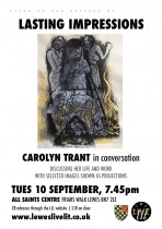 Lives of the Artists #5. Painter/Maker Carolyn Trant in conversation with LLL's Artistic Director Mark Hewitt, discussed her specialism in making 'artists books' and how she has explored images and words in a range of ways from sculptural objects and installations to hand-cut and printed woodblock books., showing images throughout and with a display of some of her acclaimed artist's books. An LLL series in which artists talk about how and why they do what they do in the way that they do it.