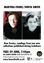 LLL's first event in Lewes for over 16 months and the first event at this venue to happen in 2021. A socially distanced audience celebrated two new collections of poetry published during the last few months of lockdown. Irish poet Martina Evans read from her book American Mules (Carcanet) and Sussex poet Sonya Smith from Every Robin I Never Quite Saw (Tall Lighthouse).