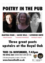 A welcome return to putting on a poetry event in a pub, and hopefully beginning a new series of events. A lovely atmosphere and lovely readings by three great poets: Martina Evans, Jackie Wills and Catherine Smith.