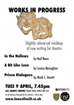 Lewes performance of LLL Productions' Prison Dialogues, written and directed by Mark C. Hewitt with performances by Sonny Jaiteh, Connor Mills, Araba Jane, Leann O'Kasi and Sarah J. Lewis. “Utterly convincing. 5 excellent performances.” (Audience feedback,)