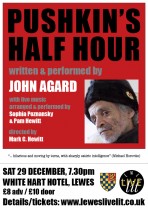 Whimsical whirlwind homage to mixed race Russian poet, Pushkin, in which John Agard transforms his famous verse novel, Eugene Onegin, into a contemporary parlour production in which he plays all of the parts, not just Pushkin and alter-ego Onegin, but love interest Tatyana and the old nursemaid Filipevna!. With live music for accordion, ukulele and voice by Sophia Poznansky and Pam Hewitt. Directed by LLL's Mark C. Hewitt. Part of LLL's Outside Eye season.