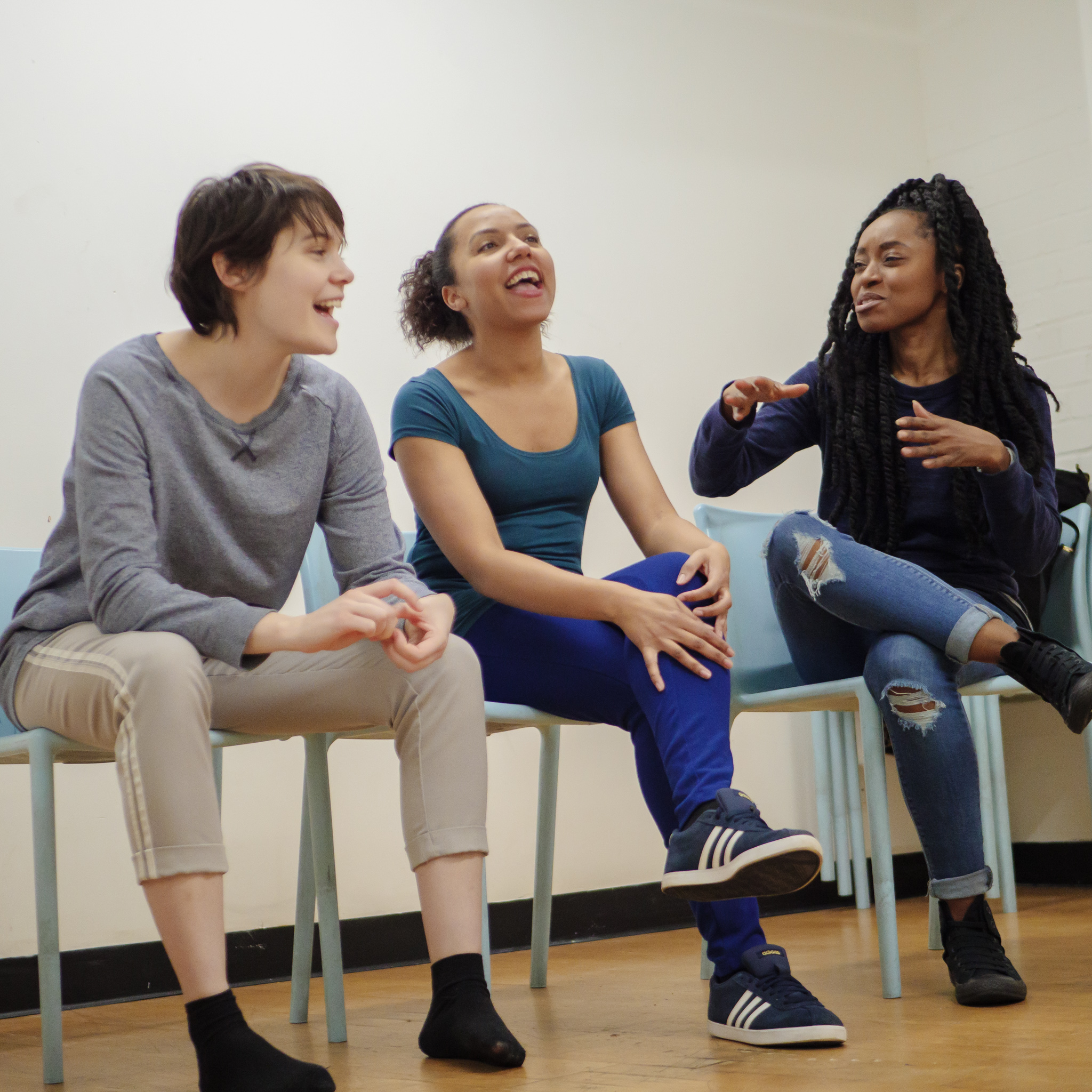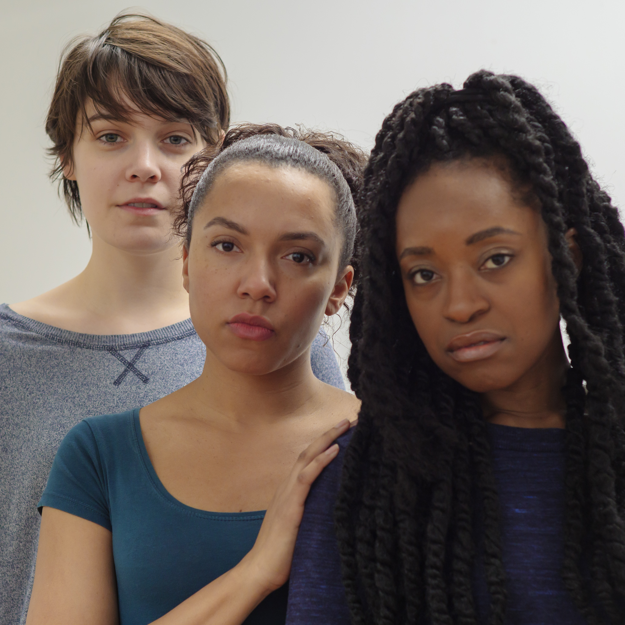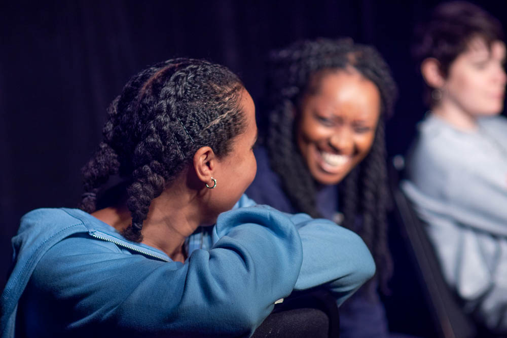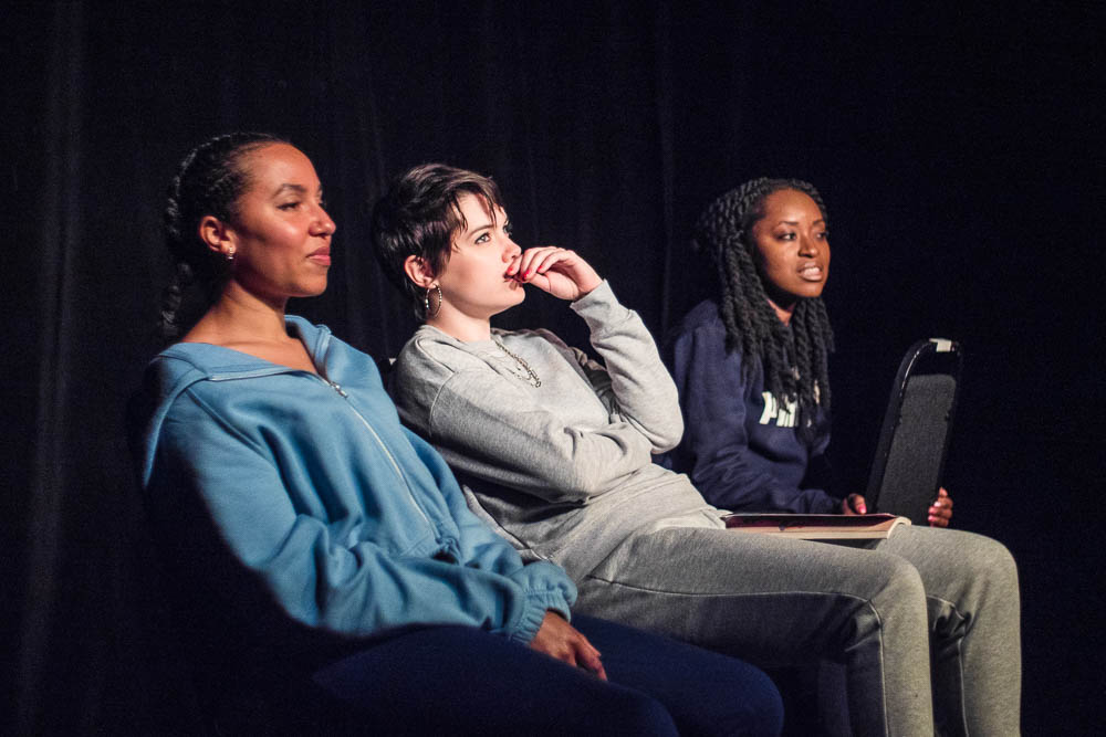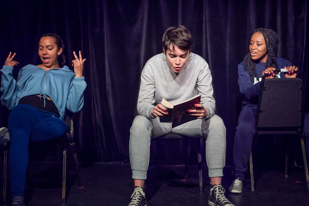 (Photo, actresses Leann O'Kasi, Araba Jane & Sarah J. Lewis, working with me on early drafts of the female dialogues at the Actors Centre, London, July 2019)