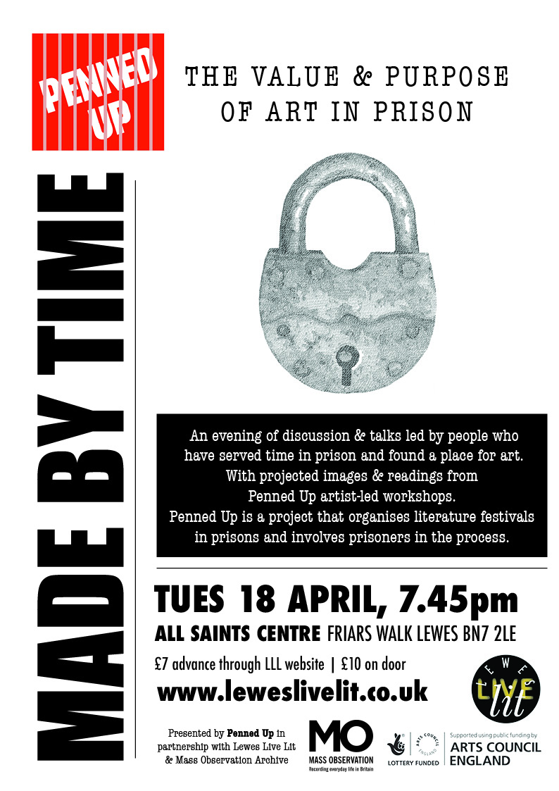 An evening of discussion & talks presented by Penned Up, a project that that organises literature festivals in prisons and involves prisoners in the process. The evening featured a talk with projected images by ex-prisoner/now-artist Gary Mansfield and prisoner writings from Penned Up workshops read by actor Tommy Oldroyd, plus contributions from art tutors working at HMP Lewes. Hosted by Penned Up's co-director, David Kendall.