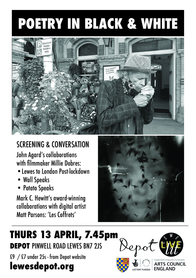 Thurs 13 April, The Depot, Lewes: filmpoems by John Agard & Millie Dobres and award-winning video miniatures by Mark C. Hewitt & Matt Parsons. With guest interviewer, Catherine Smith.