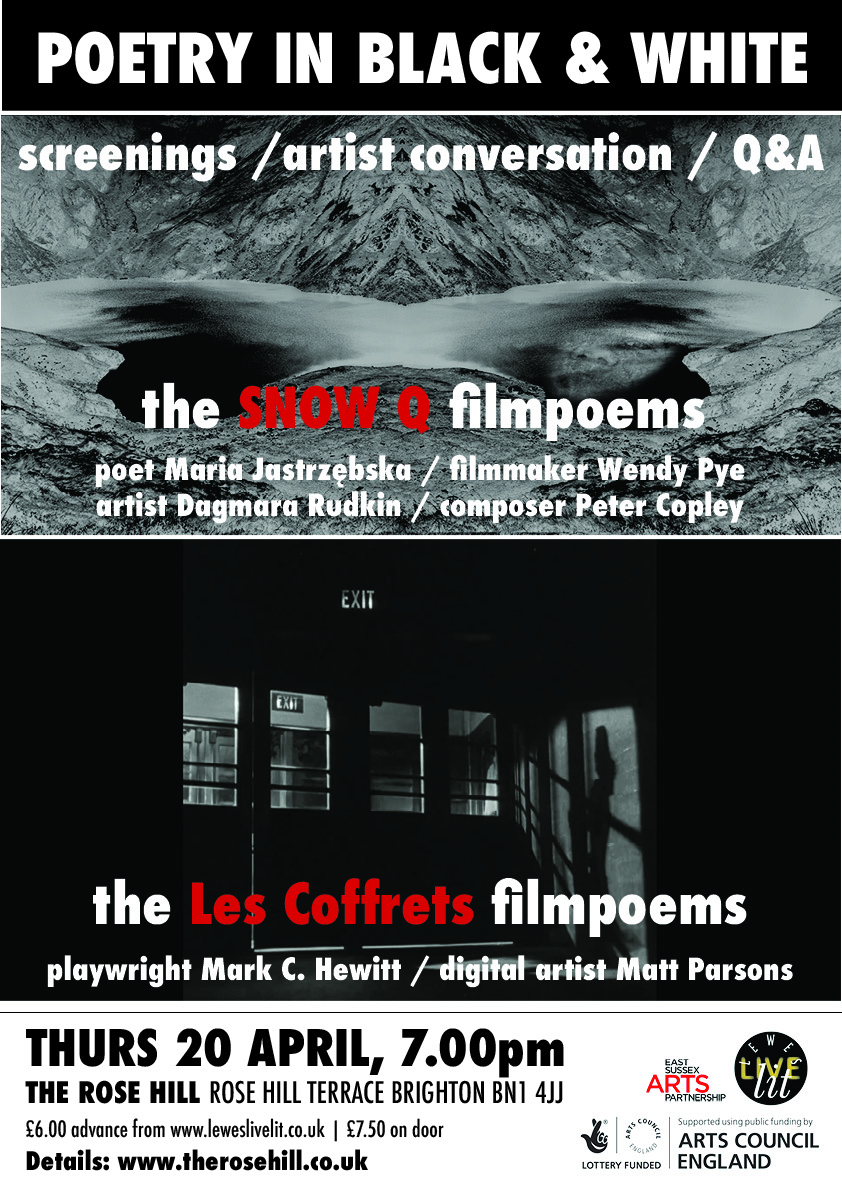 Thurs 20 April, The Rose Hill, Brighton: poet Maria Jastrzębska and filmmaker Wendy Pye showed and discussed the three Snow Q filmpoems alongside a screening of three video pieces by Mark C. Hewitt & Matt Parsons.