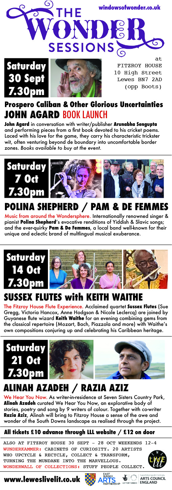 A series of events to accompany the WONDER exhibition at Firzroy House, Lewes, featuring curiosites by 20 artists.