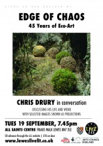 Lives of the Artists #7: EDGE OF CHAOS. Internationally recognised 'land artist' Chris Drury discussed the development of his work through 45 years of Eco-Art. The event was the latest in a series of conversational events illustrated with projected images in which local artists talk about how and why they do what they do in the way that they do it.