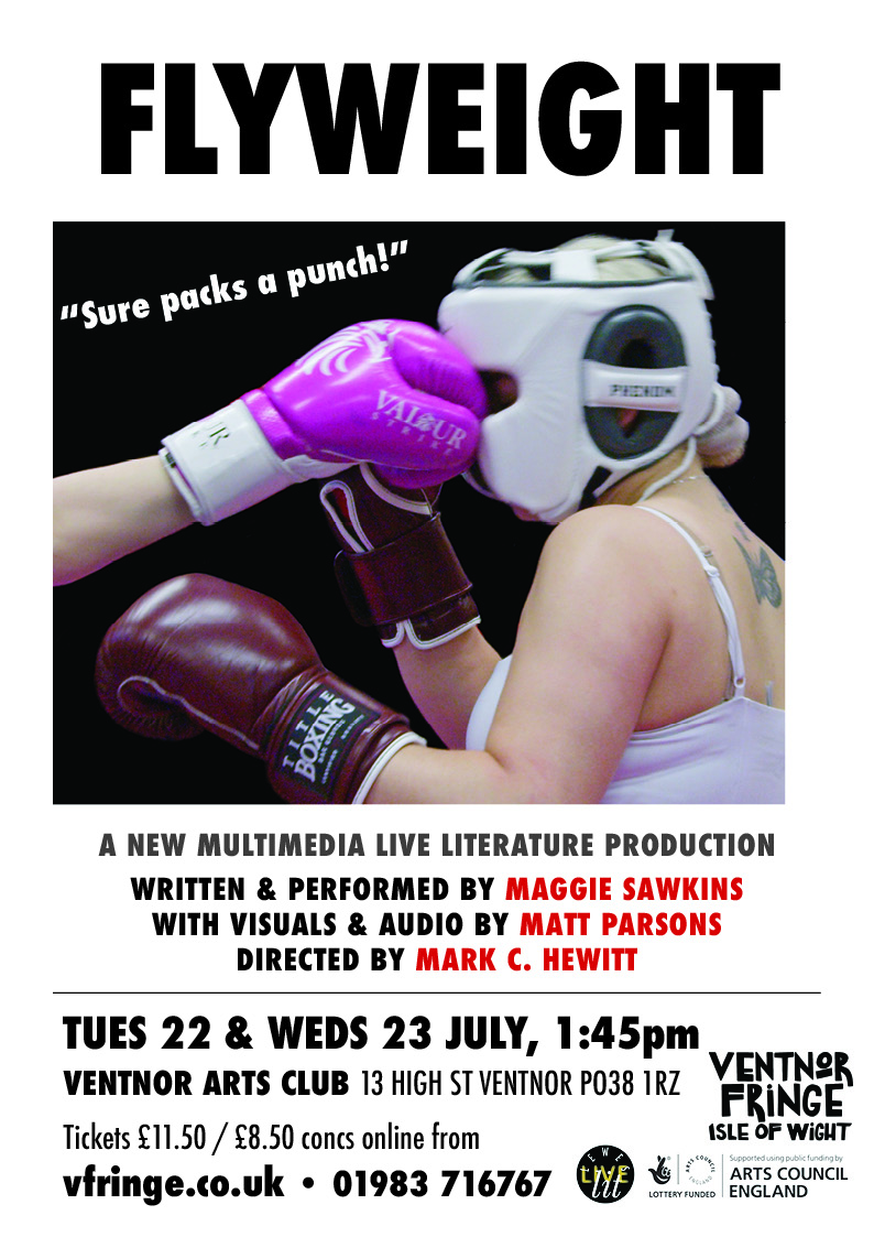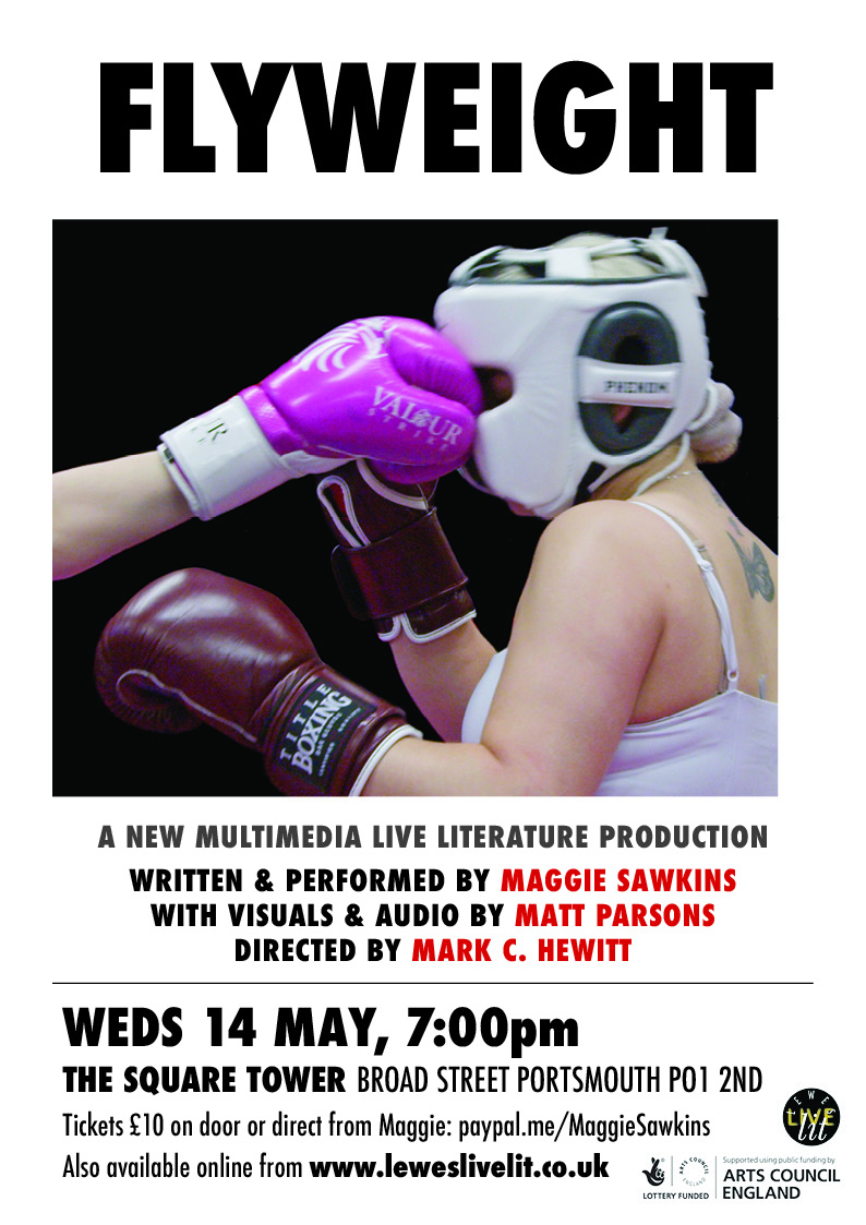 The preview tour of FLYWEIGHT, a new multimedia live literature production written and performed by award-winning poet Maggie Sawkins, that explores the unlikely theme of boxing, and in particular, female boxing. The work combines poetry with nuggets of research, complemented by entertaining visuals by artist/filmmaker Matt Parsons. Developed by LLL in partnership with Heart of Portsmouth Boxing Academy and directed by LLL's Artistic Director Mark C. Hewitt, the work toured from May to July 2025.