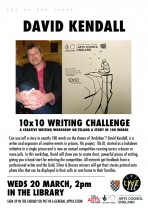Continuing our season of events at Lewes Prison, writer and literature activist David Kendall ran a workshop for prisoners linked to his 10 x 10 writing challenge, an annual competition that runs across a dozen or more prisons in which participants are invited to write a 100-word story.