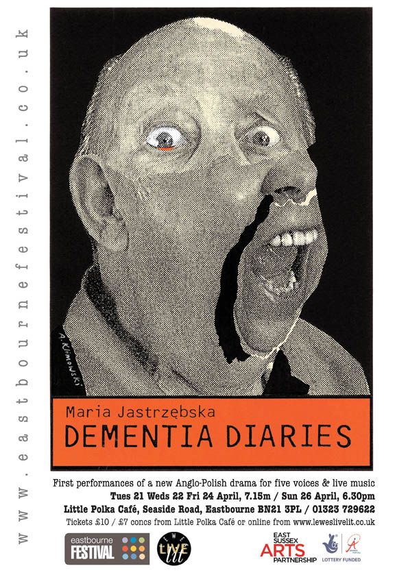 “Maria Jastrzebska’s Dementia Diaries is a very powerful play. The characters address you directly as in an Alan Bennett talking heads monologue but here there are the mother and father, both with dementia, and the sister and brother and the carer all speaking directly. It is both hard hitting and at times very funny. As someone who has a family member with dementia I recognized the dilemmas, the anguish, the humour – brilliant writing at its best.”