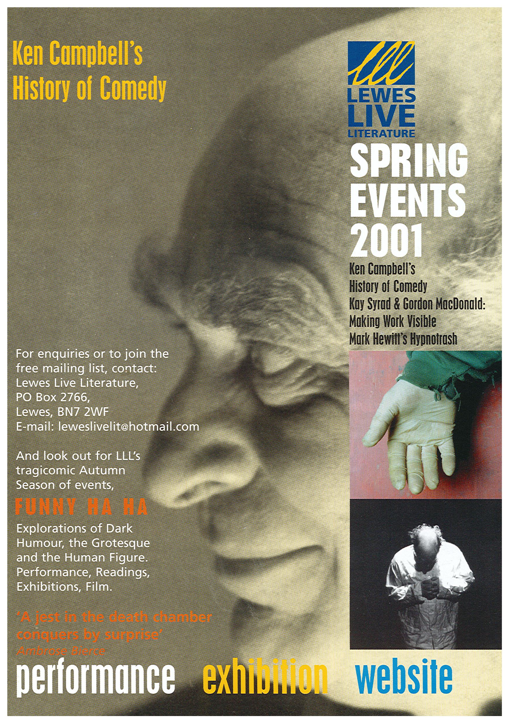 2001 - 2007. For six years, a highly successful run of intensive three day Autumn (and sometimes Spring or Summer) festivals presenting an eclectic mix of spoken word, performance, music, film and art. (See documentation in gallery.)