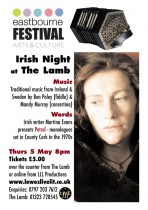 Compelling traditional music from Ireland and Sweden by virtuoso musicians Ben Paley (fiddle) and Mandy Murray (concertina). Plus the first ever work-in-progress performance of Petrol, a new live literature piece by Martina Evans set in County Cork in the early 1970s.