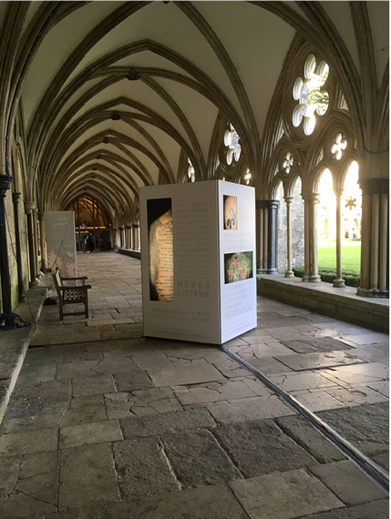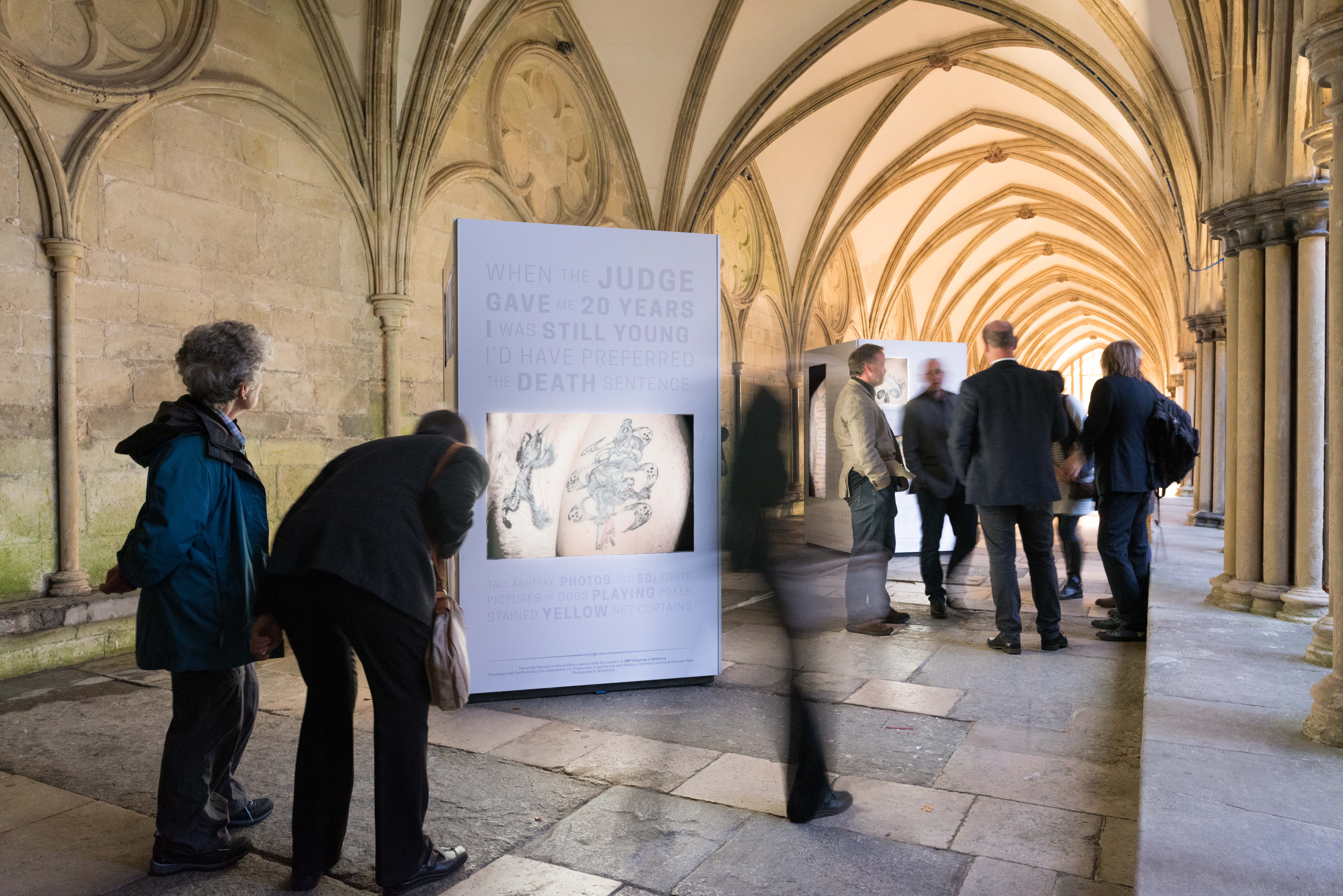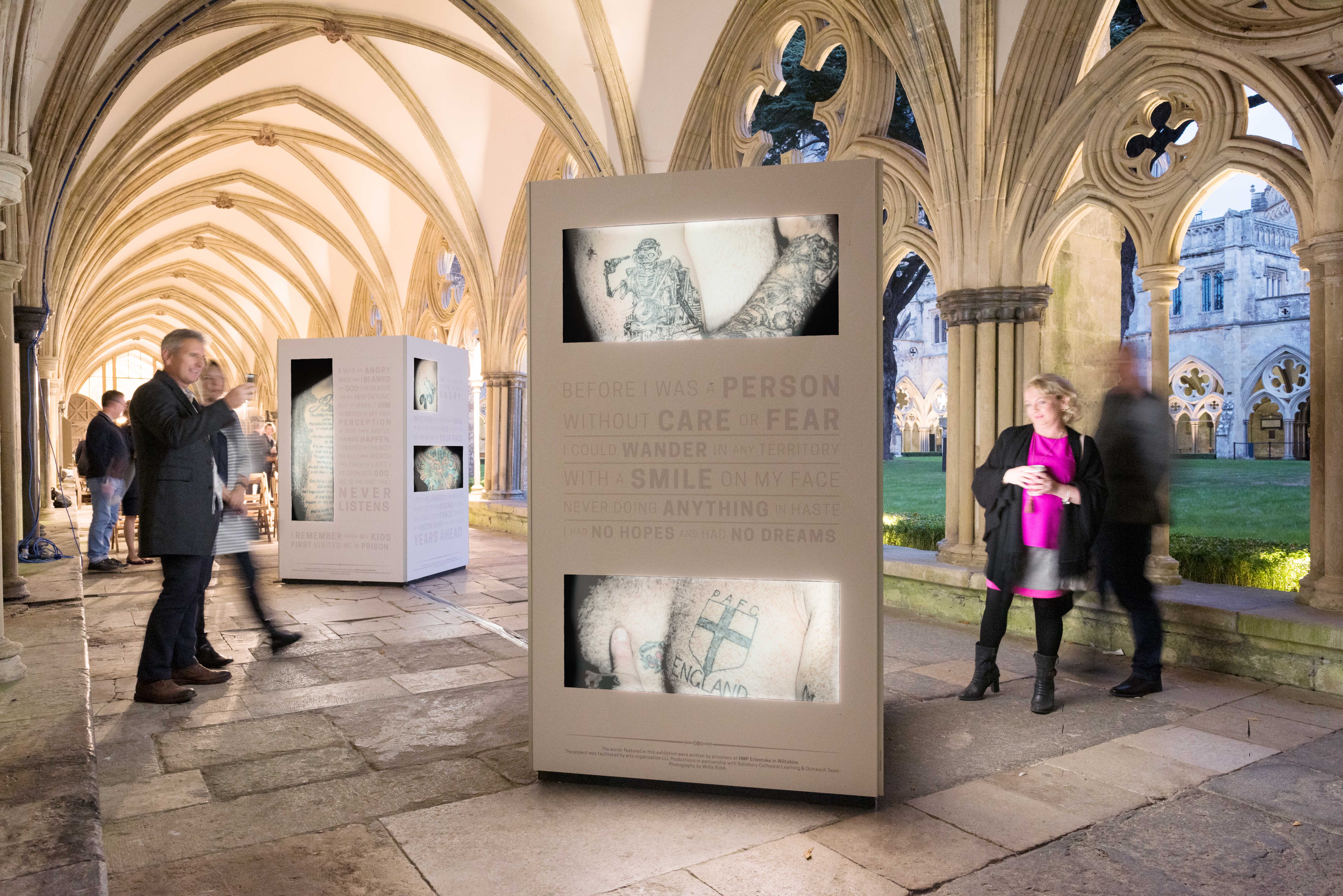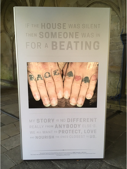 The words featured in this exhibition were written by prisoners at HMP Erlestoke in Wiltshire. The project was facilitated by LLL Productions in partnership with Salisbury Cathedral Learning & Outreach Team. The project was financially supported by Arts Council England, Salisbury Cathedral and Friends of Erlestoke.